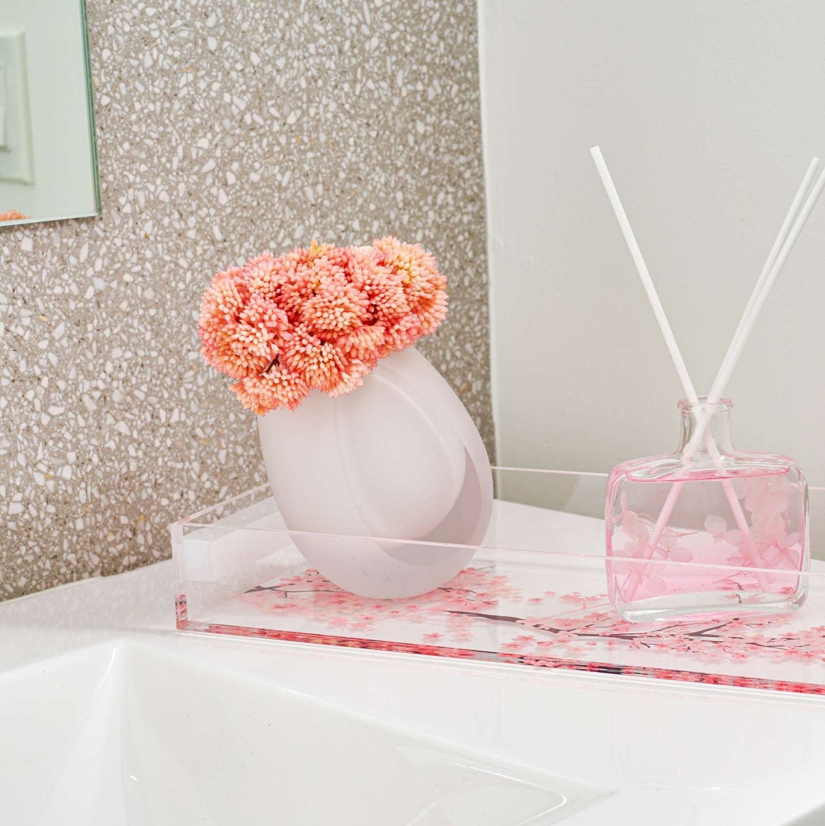 Magnificent Tilt Faux Floral Vases. Elegant yet understated, fresh pink or burgundy real-look faux floral lend a grace note any space, and ours will last well beyond their springtime peak. Crafted by artisans, each flower, and stem is shaped, painted and assembled by hand to achieve remarkable realism, then arranged in a tilted ceramic vase filled with acrylic that creates the look of water. Designed to bring a touch of natural beauty to any space!